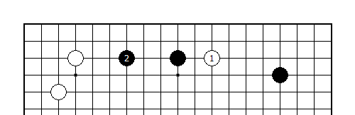 逆に6図のように黒1と打つと白2と打たれて、相手の白石は二間ビラキの安定した石なのに自分の石は中央に逃げる ばっかりで、攻められることになります。